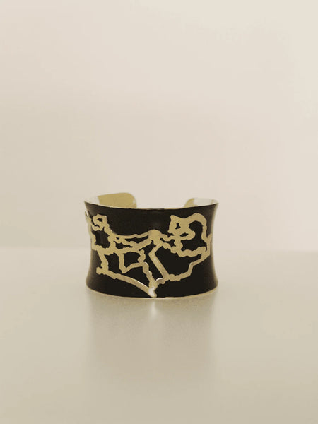 Descubre la pura vida de Costa Rica con este elegante brazalete de bronce esmaltado y bañado en oro de 18 quilates. Su trazo ondulante, delicadamente trabajado, evoca la cordillera que abraza dos océanos: del verde incendiado de los volcanes activos al turquesa salvaje del Pacífico, pasando por la niebla eterna de los bosques nubosos de Monteverde y el canto incesante de quetzales y ranas rojo-azules.