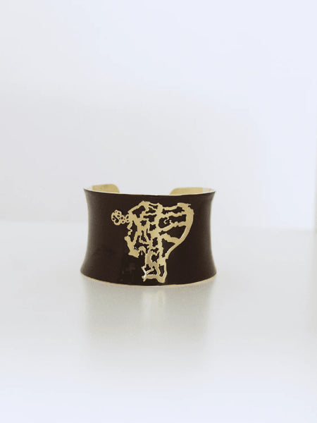 Brazalete de bronce con esmalte y baño de oro de 18K